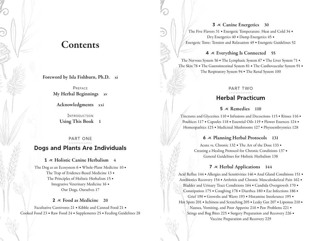 • Lays out a comprehensive materia medica of canine-specific herbs, including what conditions they are good for, their energetics, internal and external use, safe dosages, and contraindications